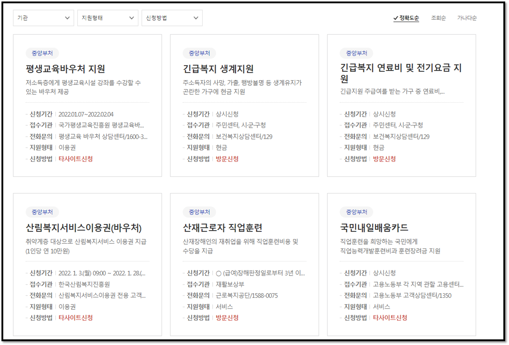 소득정보를 선택하는 항복도 있습니다. 2022년 가구 규모별 기준 중위소득표를 보시면 자신의 소득이 상위 몇 %에 포함되어있는지 아실 수 있습니다. 상황에 맞게 항목을 선택하시면 이제 다 되었습니다. 결과를 보시면 나에게 맞는 지원혜택을 알려줍니다. 지원혜택에 맞는 숨은 정부 지원금을 찾으셨으면 신청하셔야 합니다. 신청방법으로는 타사이트에서 신청하거나 현장접수하는 방법등 다양한데 타사이트 신청을 누르시면 링크를 타고 지원금을 신청할 수 있는 온라인사이트로 이동하니, 해당 혜택을 꼭 누리시기 바랍니다.